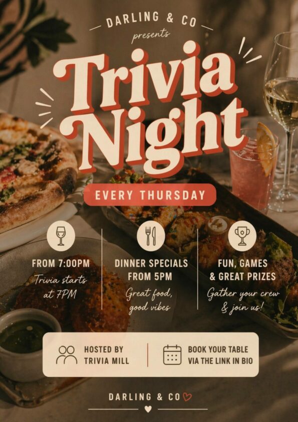 Open Wednesday to Sunday from 11am, Darling & Co make a booking or walk in, we’d love to see you!